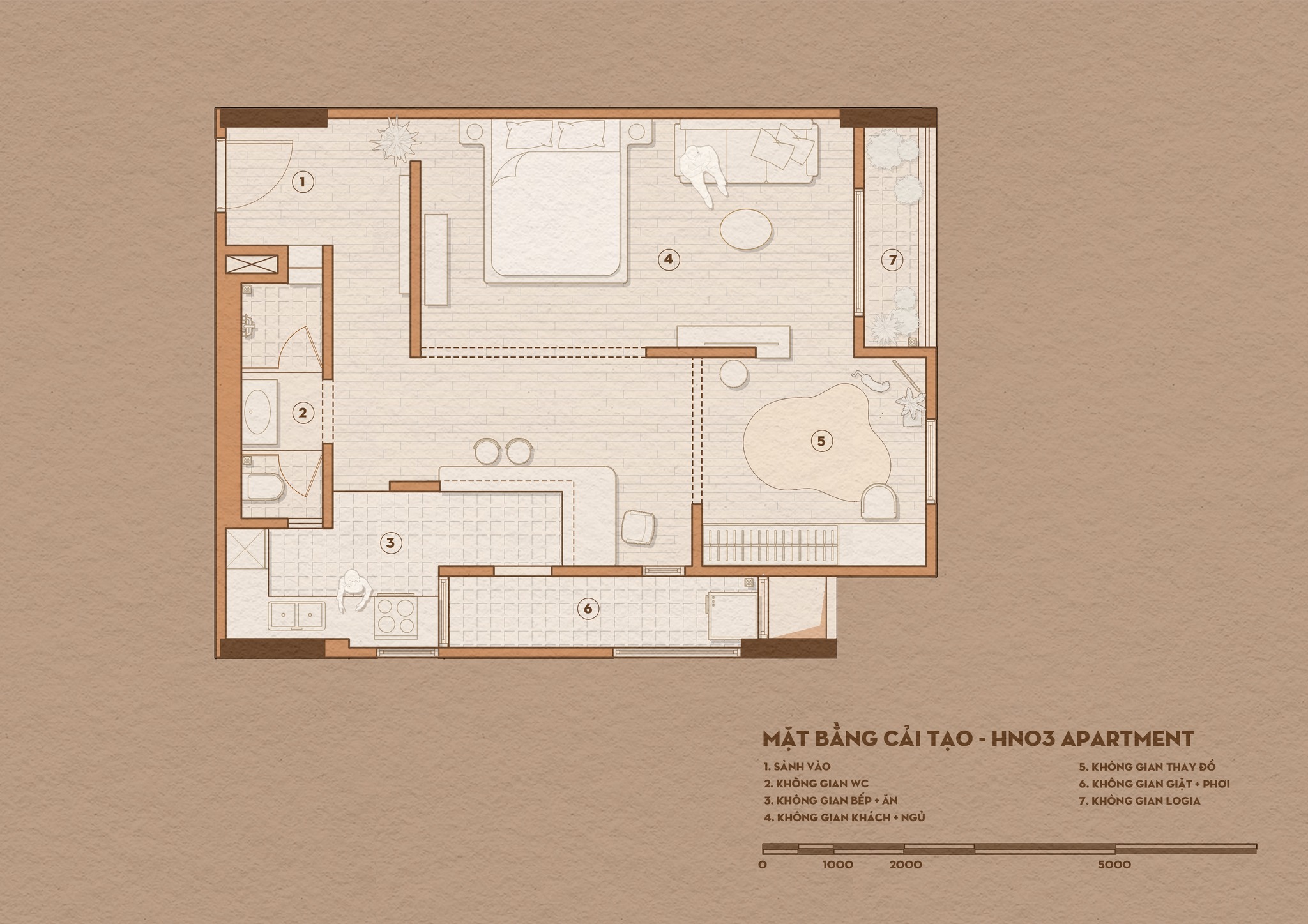 HN03 Apartment là một thử nghiệm không gian sống dành cho khách hàng nữ độc thân, nơi nhu cầu sinh hoạt cá nhân được xem như yếu tố cấu thành nên toàn bộ thiết kế.