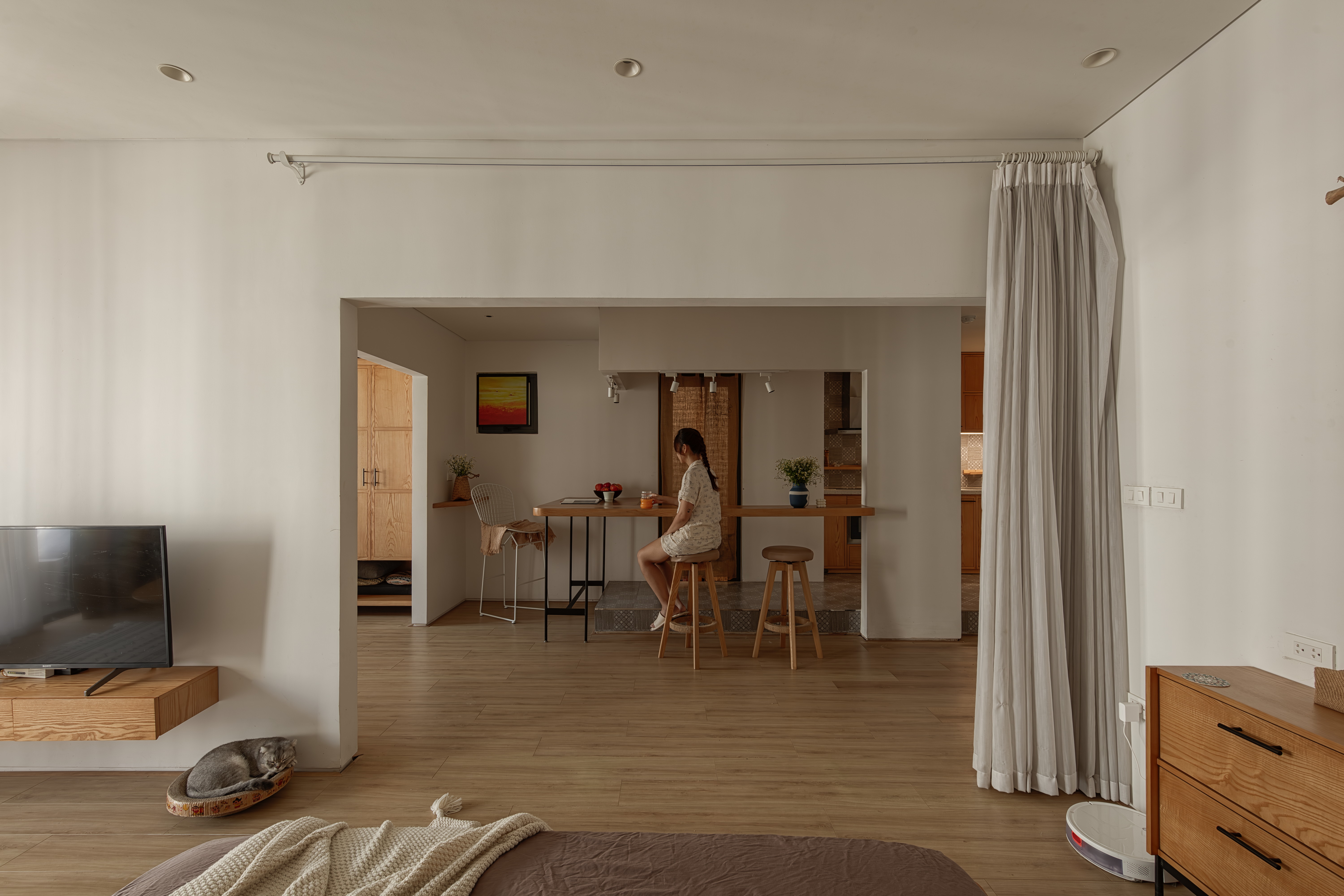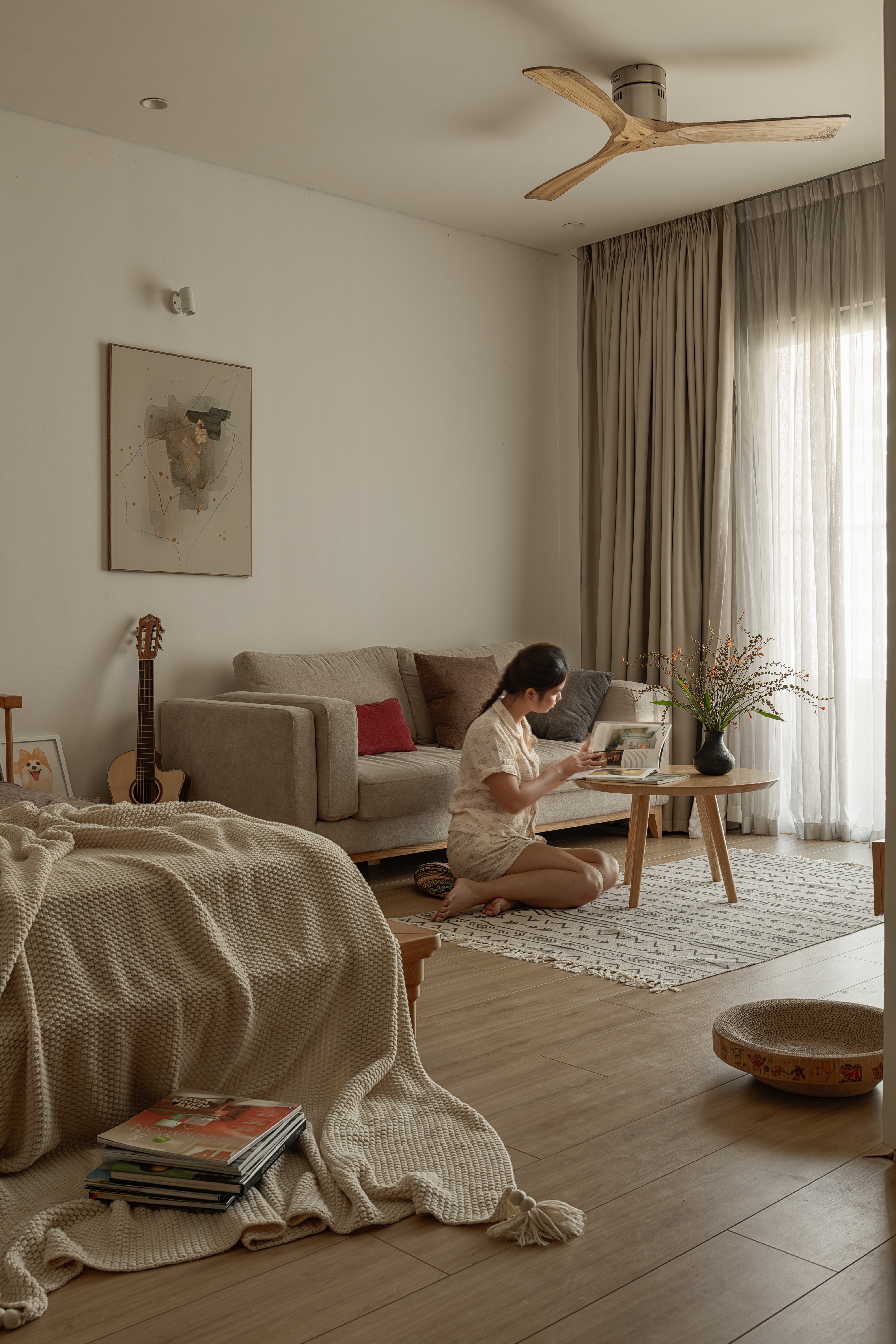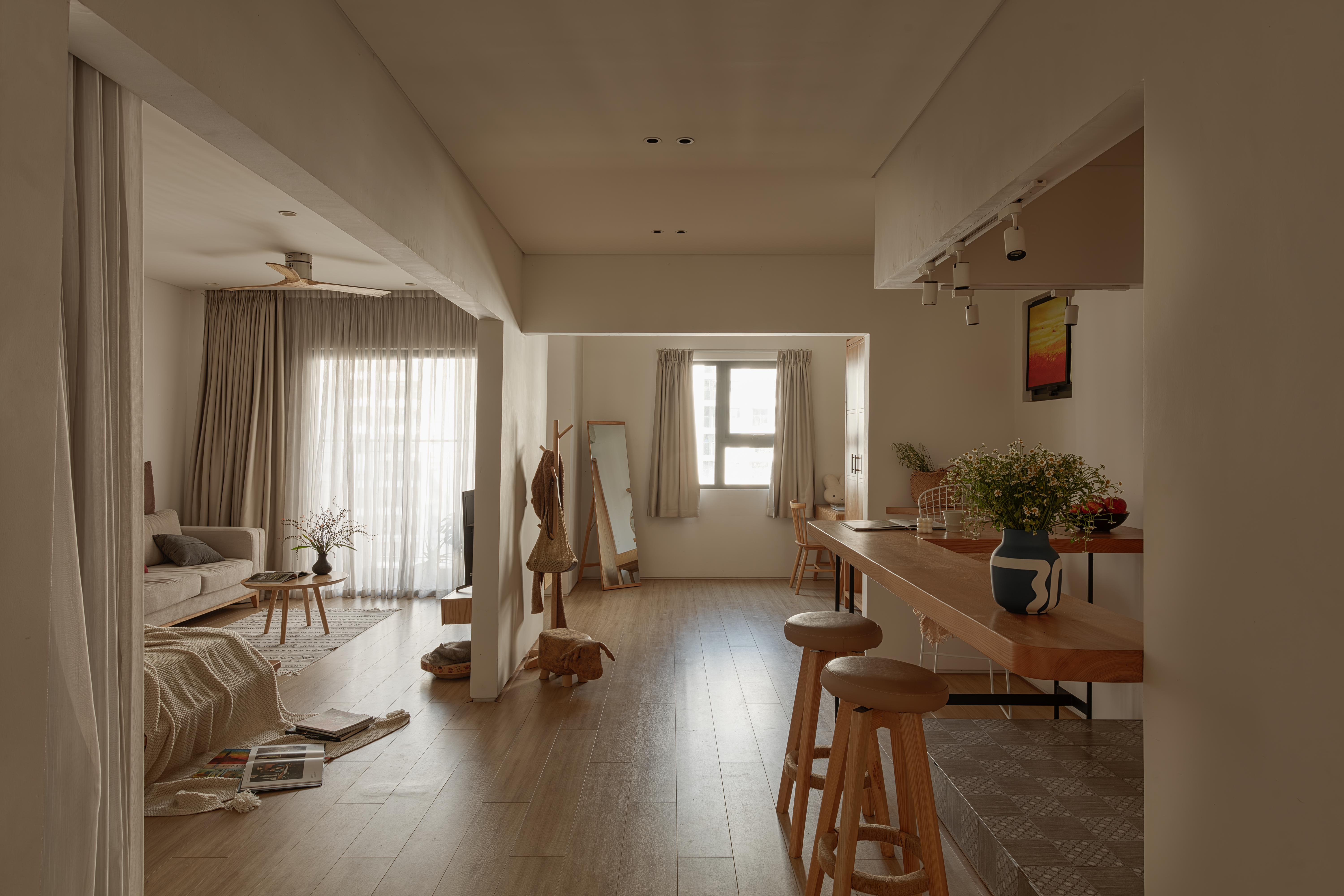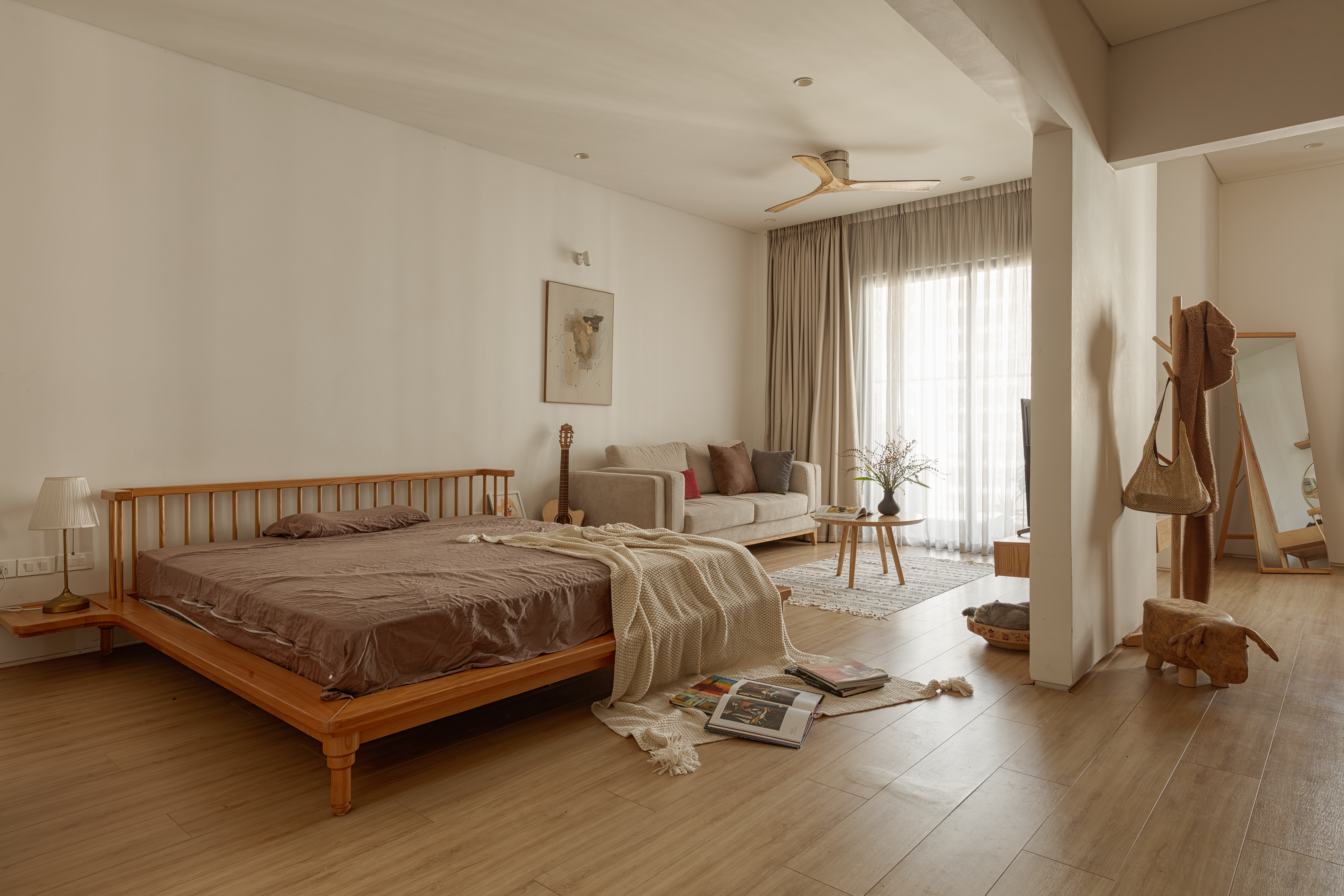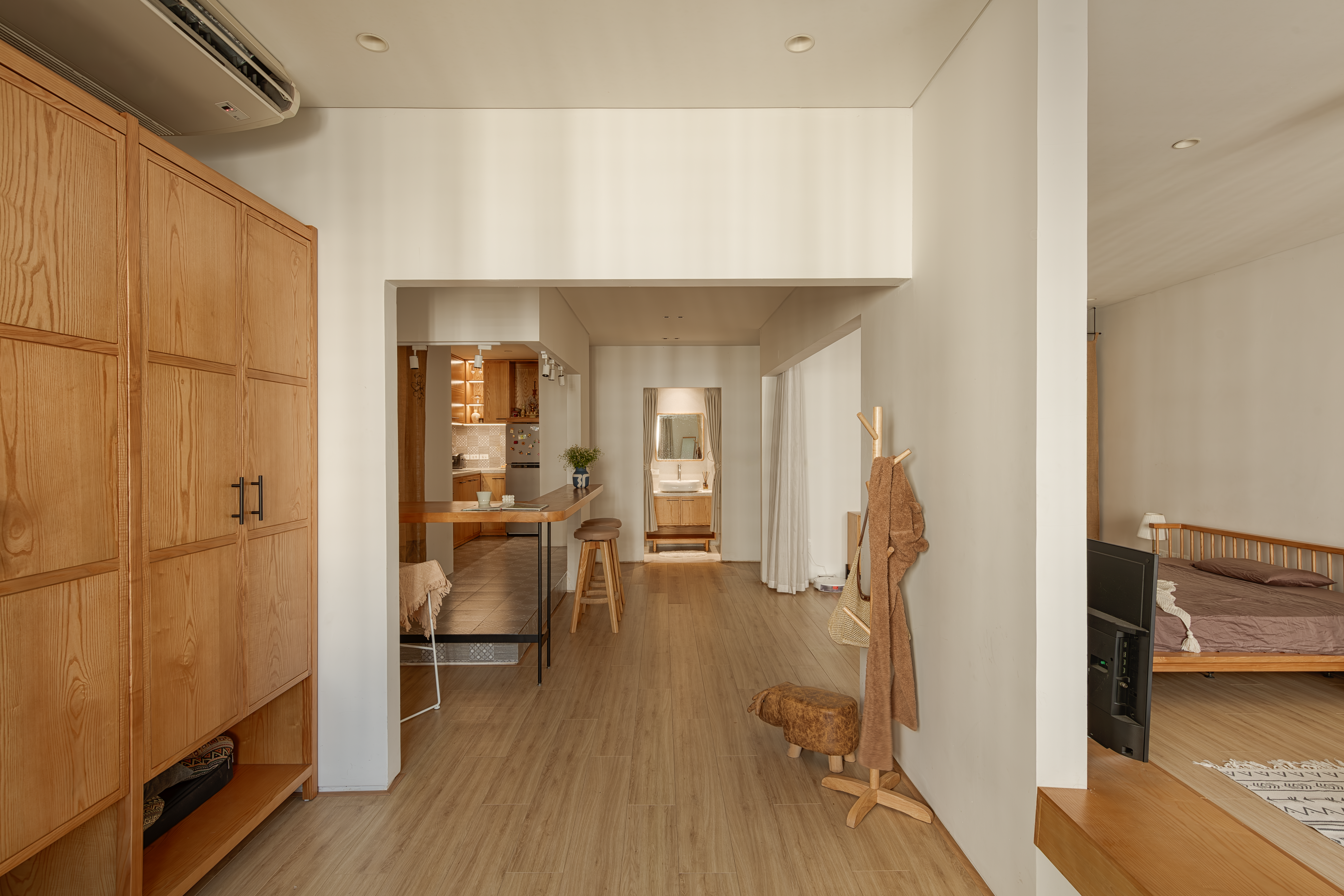 Trong dự án này, TNT Architecture lựa chọn cách tiếp cận đặc thù: tổ chức lại mặt bằng 76m² theo hướng tối ưu trải nghiệm của một người sử dụng duy nhất, đảm bảo sự riêng tư, tiện nghi và tính linh hoạt trong sinh hoạt hằng ngày.