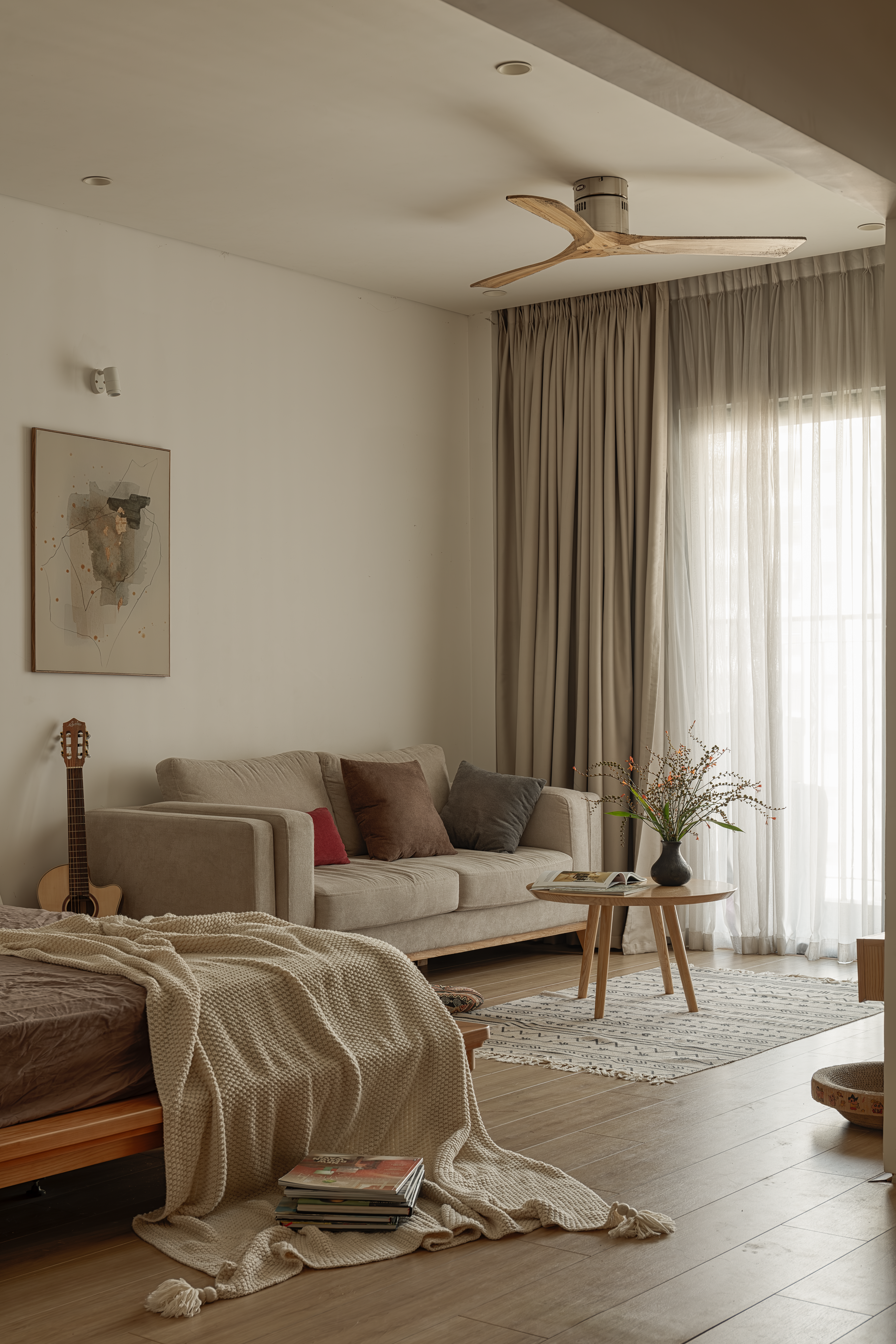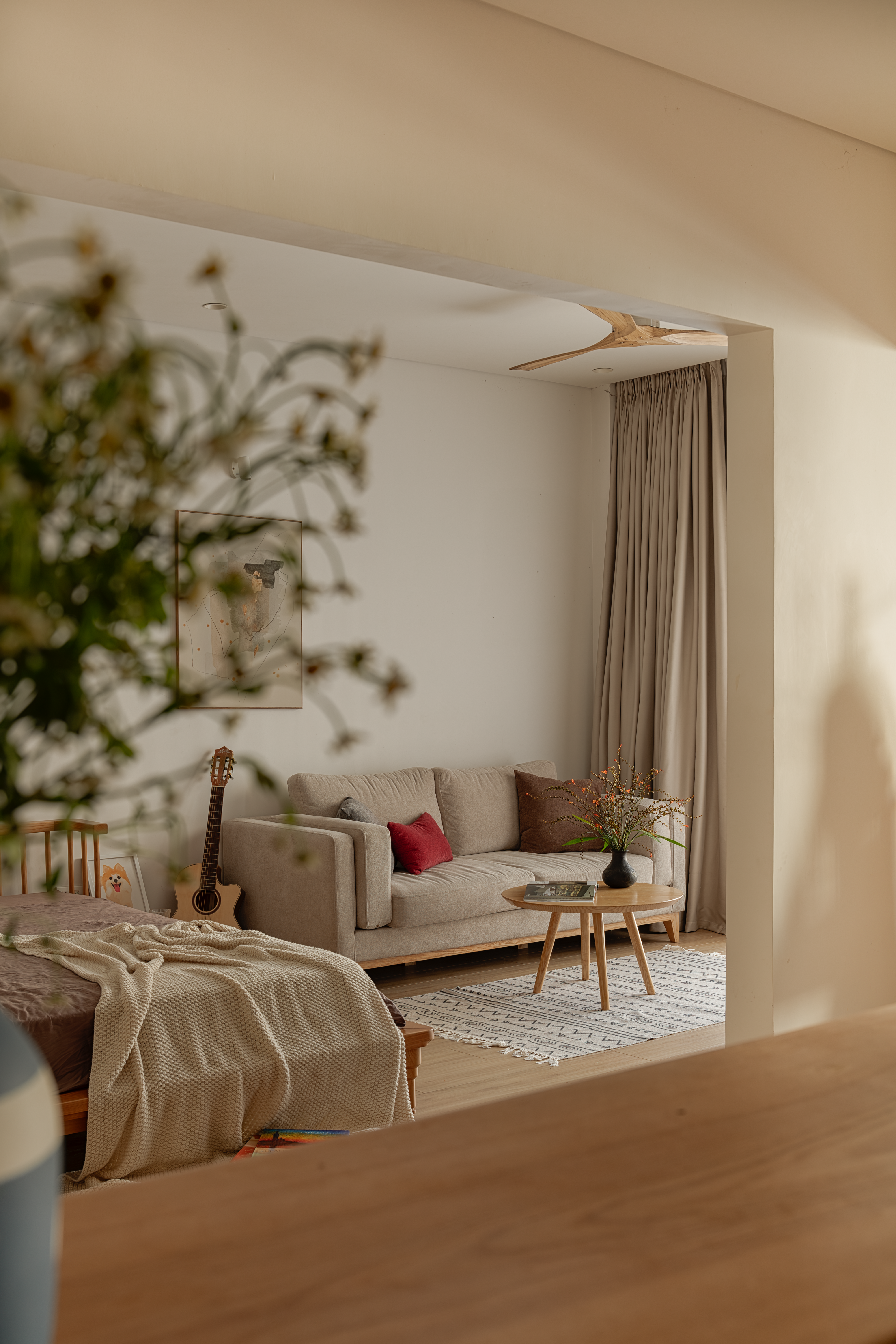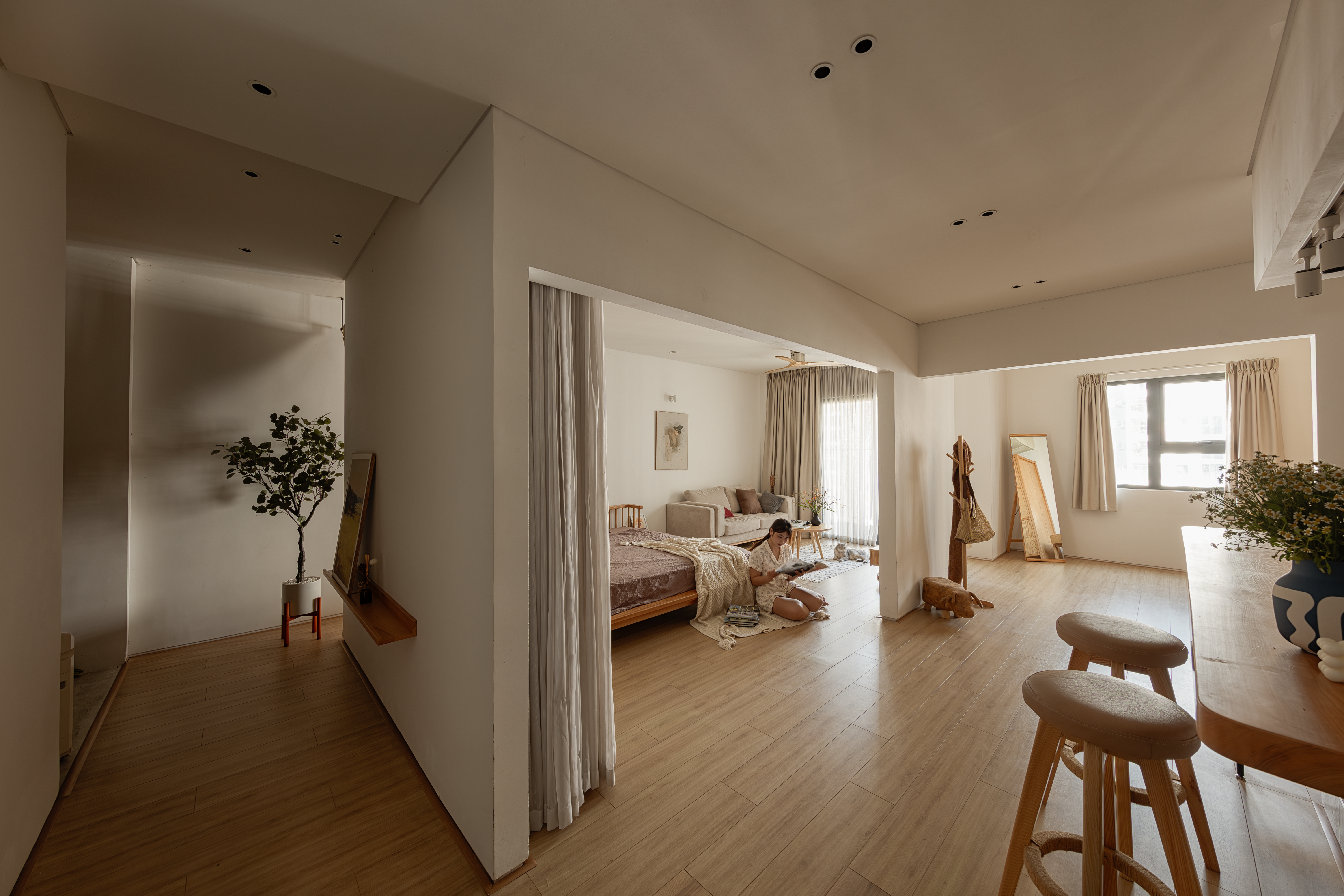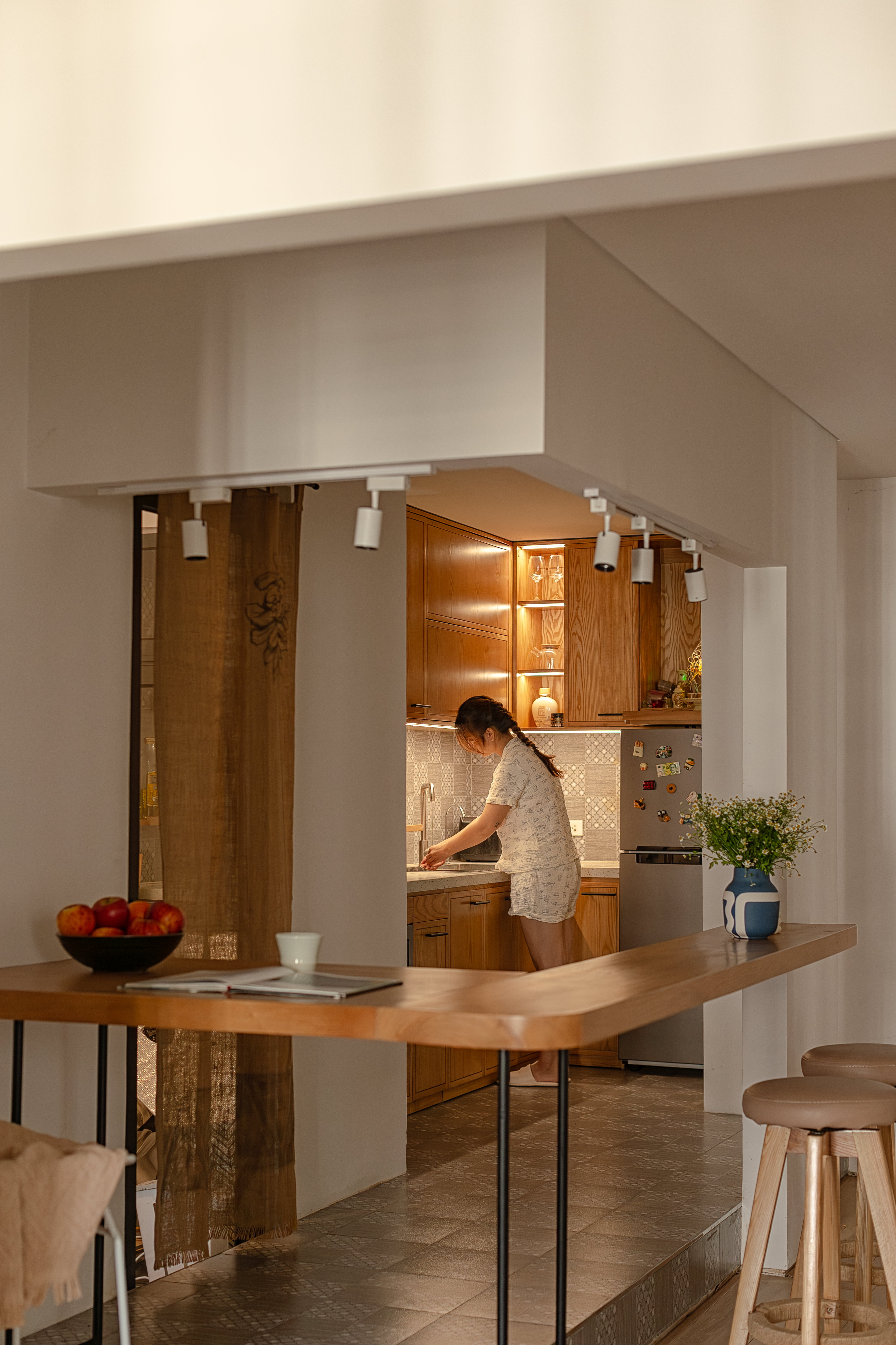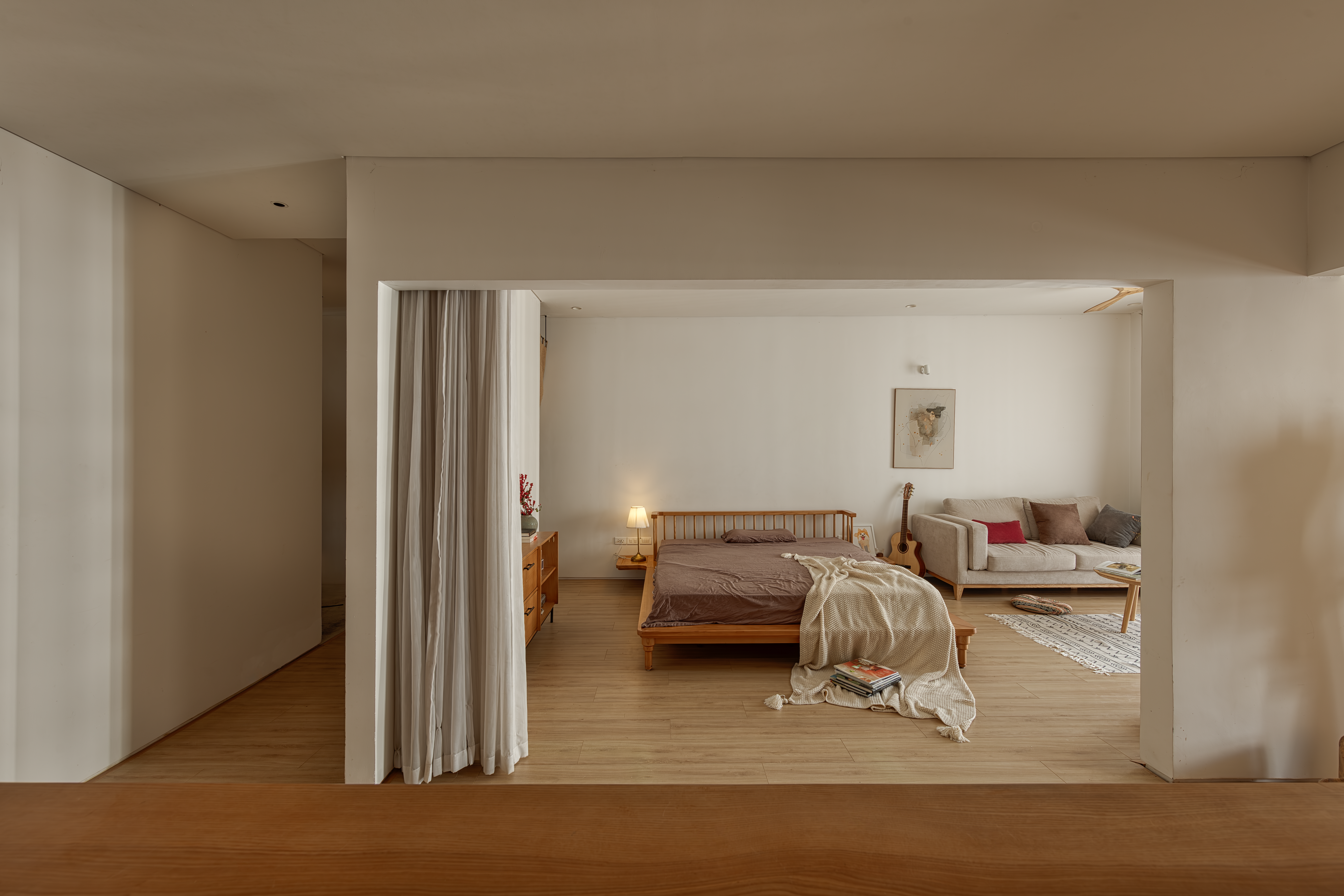 Trong dự án này, TNT Architecture lựa chọn cách tiếp cận đặc thù: tổ chức lại mặt bằng 76m² theo hướng tối ưu trải nghiệm của một người sử dụng duy nhất, đảm bảo sự riêng tư, tiện nghi và tính linh hoạt trong sinh hoạt hằng ngày.